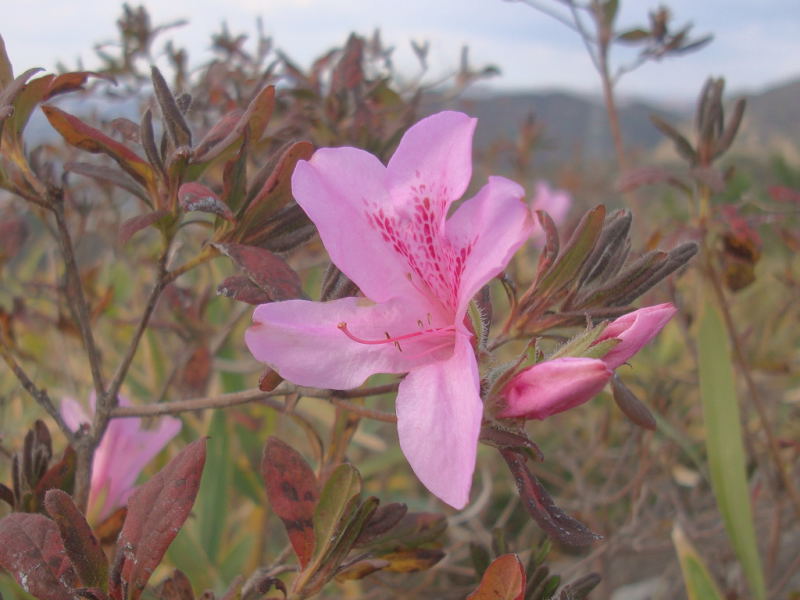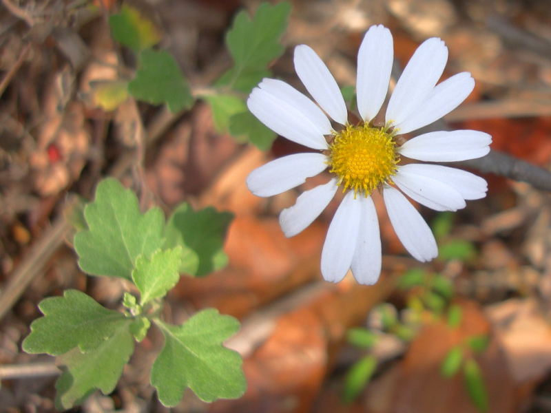 日差しを浴びて、ミツバツツジヤ、モチツツジが咲いている。どうも季節感がおかしくなりそう。秋だから、もちろん菊の花も咲いている。県花のノジギクだろうか・・・・