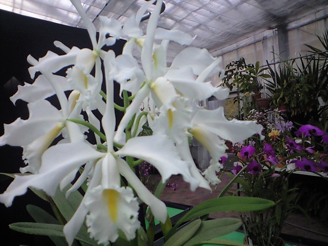 ここの温室で蘭展をやっていた。背景の山火事の跡がすごい