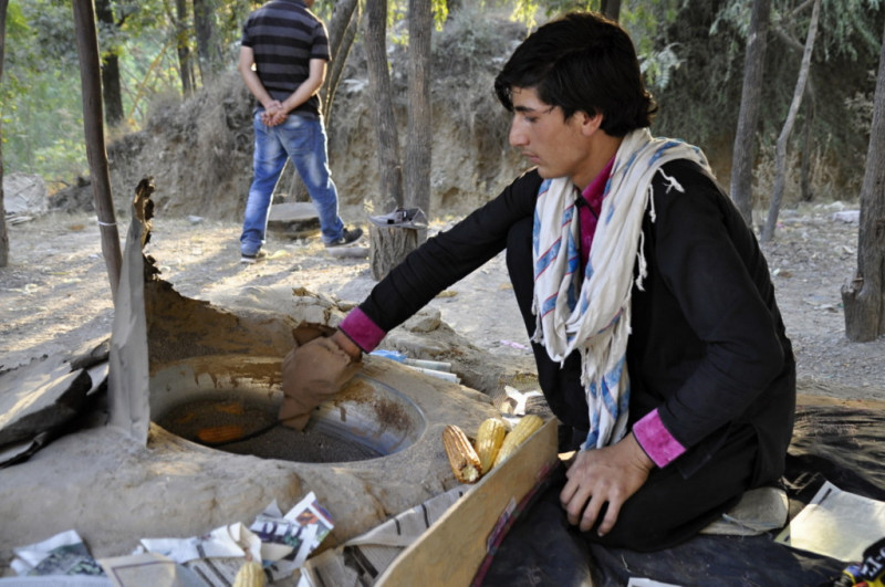 パキスタン北部に来て見ると美男美女が多く、目を奪われがちですが、ペシャムに向かう山路でも収穫したトウモロコシを焼くイケメンの父子の写真を添付しています。勿論、下車して砂と塩を入れた釜で焼く塩付、砂付の焼モロコシを食べました。