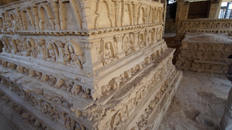 この地に限った話ではありませんが西域南道(東トルキスタン地域)を含めて12世紀頃からのイスラム進攻により、多くの遺跡は破壊されて、原型をとどめるものは少ないものの、ガンダーラでは破壊を免れて今に残る仏教遺跡、ジャイナ教、ゾロアスター教遺跡があります。