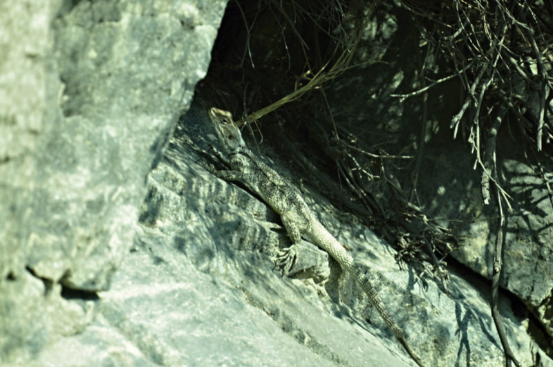 路端の岩壁・大トカゲ バスのスズキ