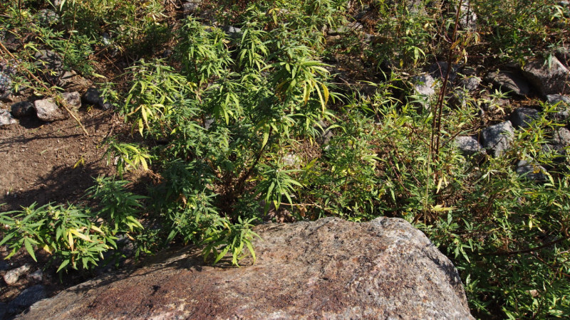 途中のバタン村のインダス川を見下ろす展望所で写真休憩、道端には自生のタイマ草が勝手にいくらでも生えており、ヤギや羊も食べています。
