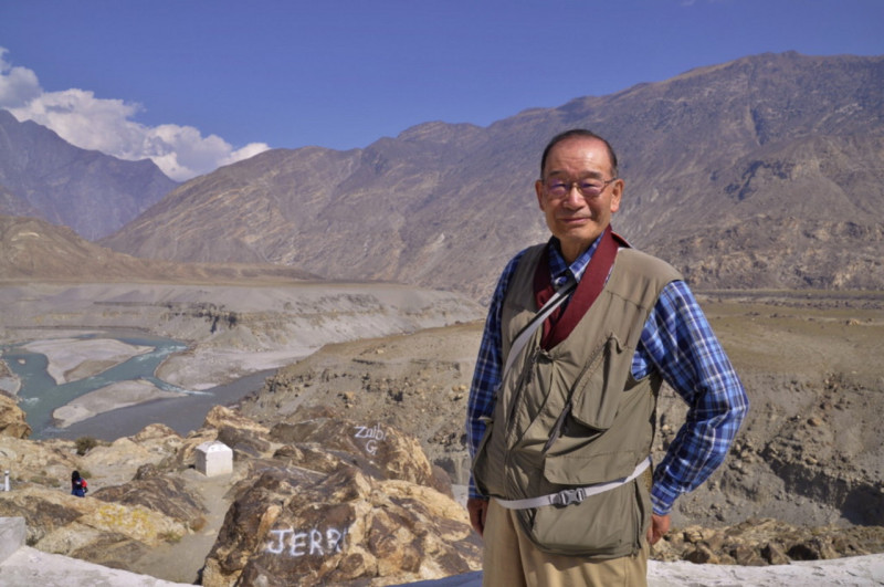 インダス川とその上流部の支流に沿って、イスラマバードから国境のクンジュラブ峠h4733mを越えて中国のパミールからカシュガルに至る1300kmの一部を除く舗装道です、現在の中国とパキスタンの交易路です、過激派タリバンなどの出没の危険もあるので、殆どのコースや遺跡でライフル装備の警察車が先導し、ツアー客については護衛をしています)は初めは左にヒマラヤ西部のナンガパルパットh8126m山塊を、左にヒンズークシュ山脈を、三大山脈合流点を過ぎるとカラコルム山塊を左右に、パミールを過ぎて西域南道では左に崑崙山脈というコースであるため、好天が続いた事もあり山や氷河の眺めが続くという山好きの私には「仏教伝来の道」と共に「ヒマラヤ・カラコルム・崑崙山脈展望の道」でもありました。