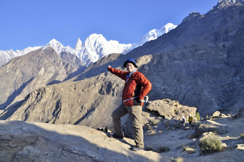 上部フンザ・カテドラル高峰群を背に 上部フンザ・黄葉&カラコルムの山