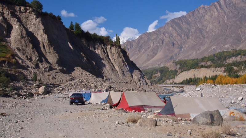 フンザ川&ギルイギット川合流点・砂金採テント