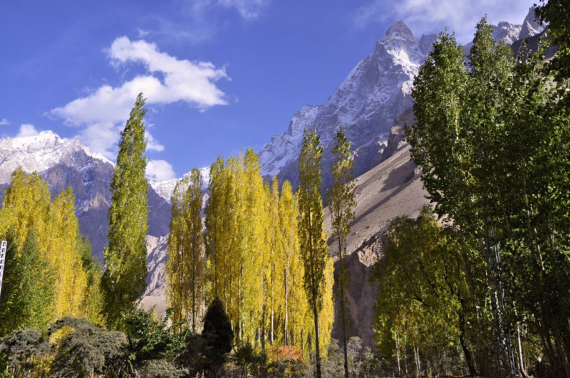 パスー村のパスー氷河やポプラの黄葉で染まるパスー村、カイバル村を眺めながら国境の町スストヘ、此処がカラコルムハイウエイのパキスタン側最後の町。