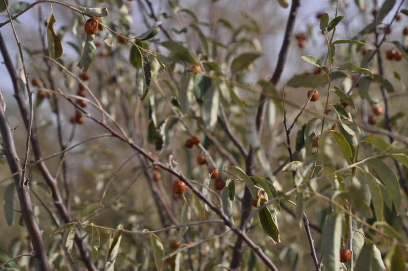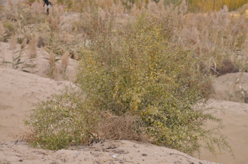 砂漠の三大植物・ヤナギハグミ(スナナツメ・グミ科) カシュガル・ガイドの趙嬢
