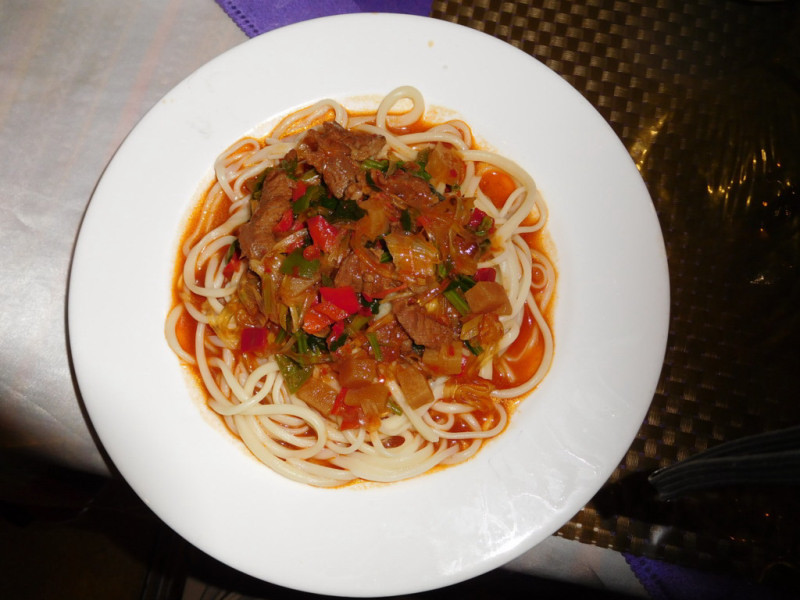 この日は到着遅れを予想して公路で早めの夕食をとり、コルラのホテルに着いたら翌日の午前1時だった。