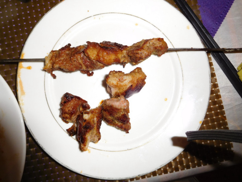 昼食・ラグメン(パスタに似ル) 昼食・シシカバブ(羊肉の炭焼)