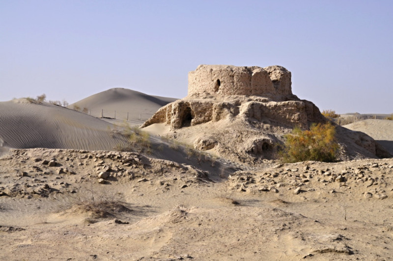 マリクワット古城は城なのか仏教伽藍であっつたのか、ハッキリしていないが、貨幣、仏頭等が出土して居るが大きな遺跡が今は砂漠の中にドーンと有るだけ、砂漠との街や住居跡もあるがよく分らないらしい、白玉河に近い場所。