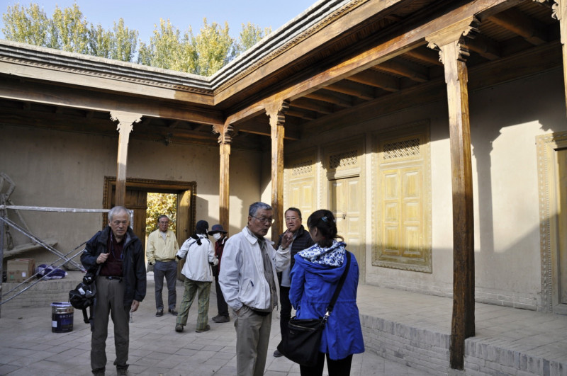 16:00にはチェルチェンに到着、博物館とそこの係員の誘導で1911年に裕福なウイグル人が第二夫人の為に建てた館であるトフラク荘園を、此処では庭に沢山の梨の木が有り実がたわわでした。此方の梨は日本にくらべて形も少し長く、味は非常に良かった。