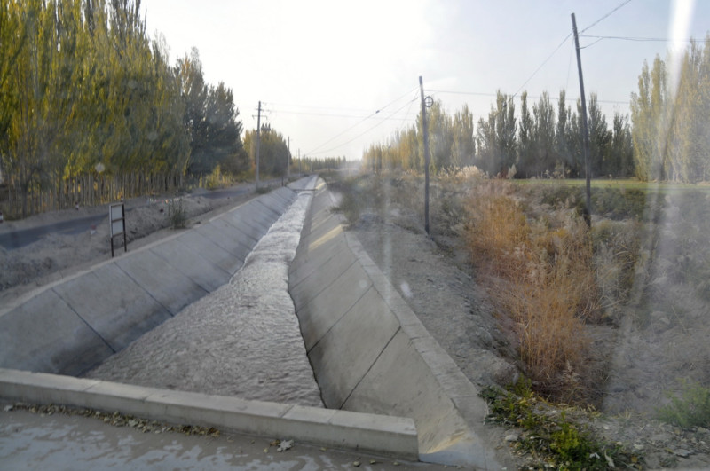タクラマカン砂漠周辺のオアシスを繋ぐ砂礫地の砂漠ゴビタンは、崑崙、天山から引きこんだ用水が多く投資されてゴビタン砂漠が、綿花、ナツメ、麦等の生産地に変わりつつ有るように見受けられました。