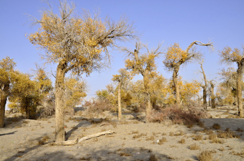 ウイグルでは最も美しい樹という意味を込めていますが、ウイグルは日本とは違い大型の樹木は胡楊しかないとも言えます。美しく、立派に砂漠に聳えているのは確かに見事です。