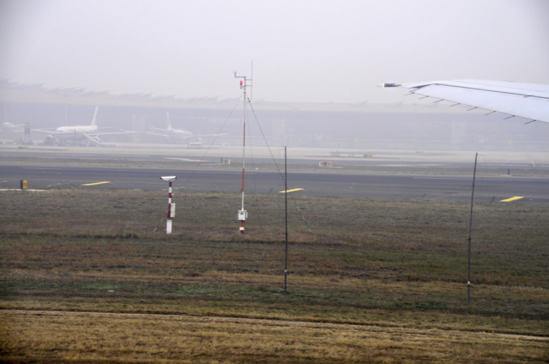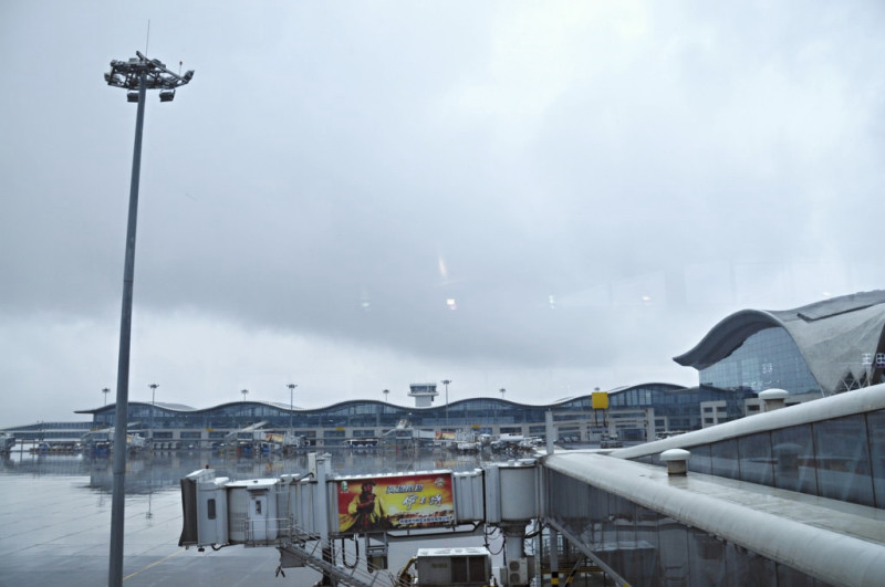 天山山脈 雨のウルムチ国際空港